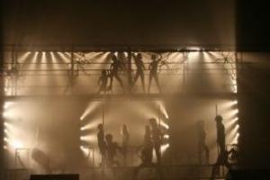 红磨房演艺大舞台创办于2003年10月,是金海岸文化发展股份有限公司发展战略上的一个里程碑,也是金海岸的一次飞跃。大舞台地处杭州市繁华商业中心武林广场—杭州剧院三楼,景区营业面积为3000平方米,富丽豪华的场内环境,全套欧美进口设施设备。宽敞舒适的演艺大厅,为金海岸品牌形象的优化和飞跃提供了一个更高的平台。大